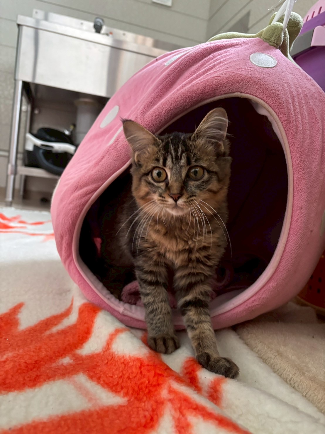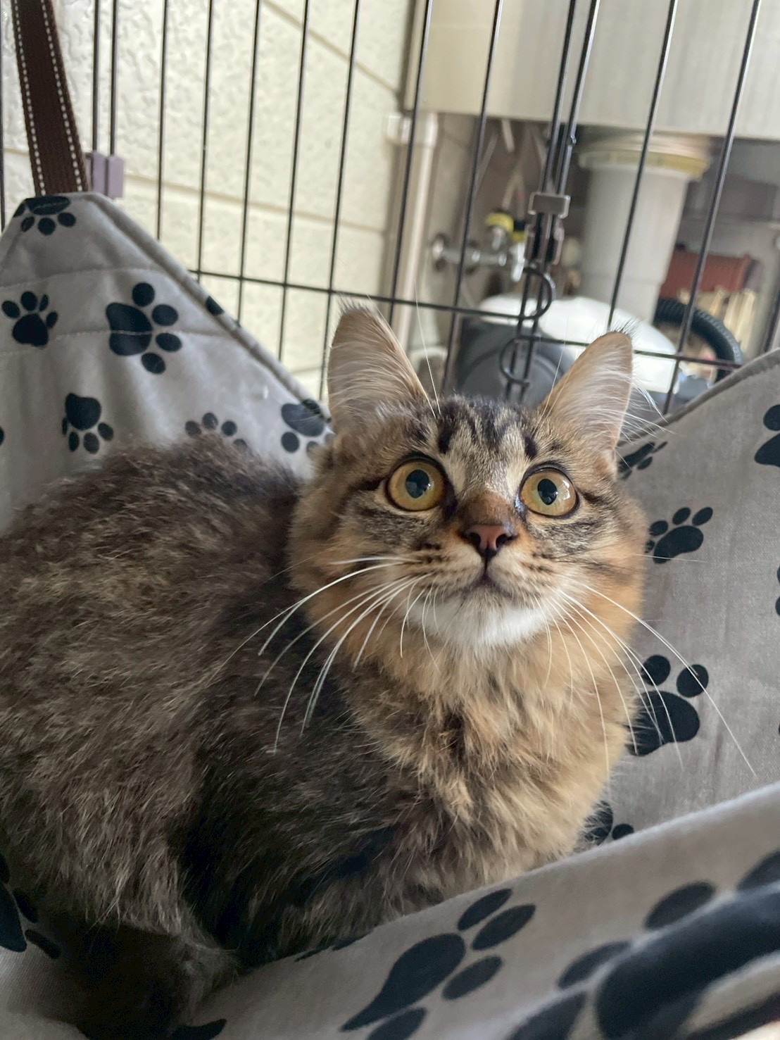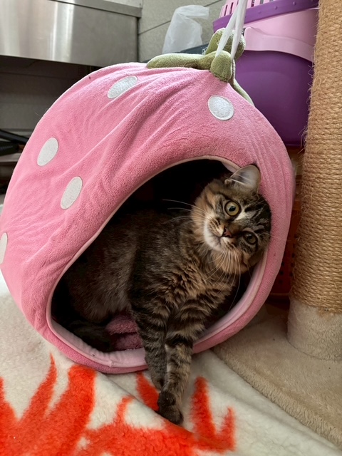 | 備考 | ○血液検査(エイズFIV・白血病FeLV):FIV(-)陰性 FeLV:(-)陰性 【2025.8/26】 ○3種混合ワクチン:実施済み 【2025.8/27】 ○検便:問題なし【2025.8/28】 R7.10/28時点での状態 人馴れ:してきている(練習中) ハンモックが大好き 外見:怪我などの問題無しだが、左半身不完全麻痺あり。 歩行・排泄できる。左目瞳孔が縮小(結膜に腫れあり) 上下運動が苦手です。 左前肢・後肢やや障害あり。(物が脚に当たっても反応が弱い・爪を出すことができない・左前脚の力が弱い・腕を床に擦りながら前進する等) |
