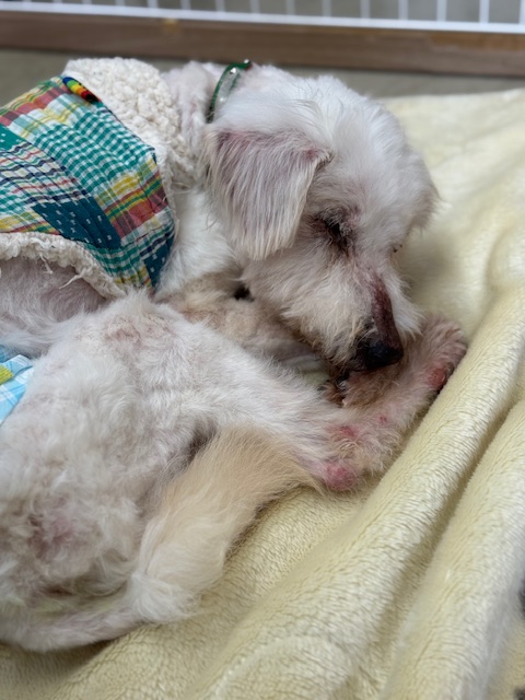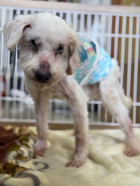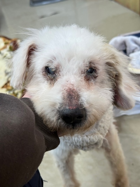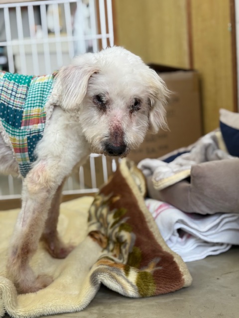 R8.3/1午後4時30分頃、中万々にて発見されました。 種類:雑種 性別:オス 体格:中型 首輪:無し R8.3/17時点での状態 人慣れ:している。 外 見:左耳外耳炎/白内障/耳が聞こえていない様子。 ○R8.3/17血液検査:実施済み |