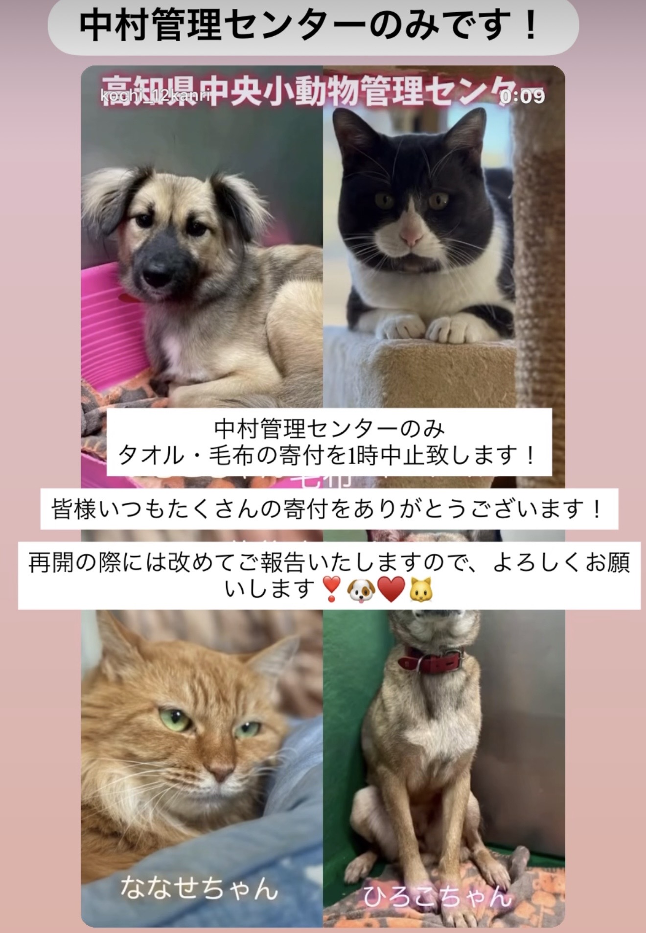 この度、中村管理センターのみタオルの寄付を一時中止させていただきます。